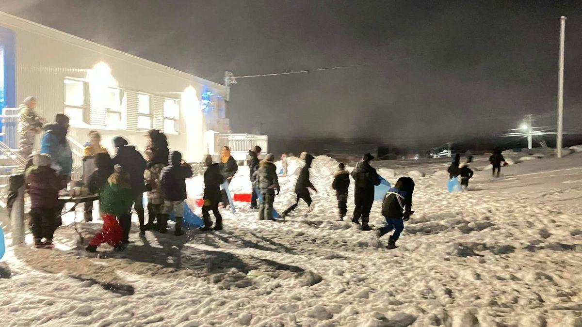 In Kangiqsualujjuaq: Tasiurtigiit teamed up with Ulluriaq school to host an outdoor sliding and hot chocolate activity for kids.